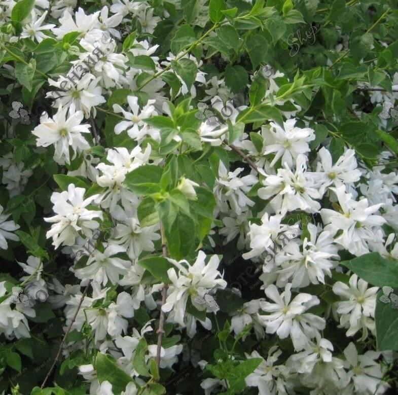 Чубушник махровый Ромашка  – эффектный декоративный кустарник из семейства Гортензиевые. Коллекционный сорт  отличается компактными размерами, изящными необычными цветками, делающими его непохожим ни на один сорт чубушников и отличной зимостойкостью. Крона пышная, округло-раскидистая, до 1м высотой и в диаметре. Ветви тонкие, дугообразно изогнуты. Листья матовые, ланцетно-продолговатой формы с резным краем, среднего размера, ярко-зеленые, осенью желтеют. Цветки крупные, махровые, почти плоские, чисто белого цвета, с узкими длинными лепестками до 3см длиной, в разнобой изогнуты вверх, вниз и пропеллерообразно, внешне напоминают  магнолию, собраны в рыхлых соцветиях на концах побегов либо в пазухах листьев, без запаха. Цветение обильное, продолжительное, в начале июня. Засухоустойчив, в длительный жаркий период рекомендован регулярный полив. Предпочитает увлажненные суглинки, но не терпит застоя воды и засоленных почв. Любит солнечные места, переносит полутень, но уменьшает интенсивность цветения. Сорт устойчив к болезням и зимостоек.