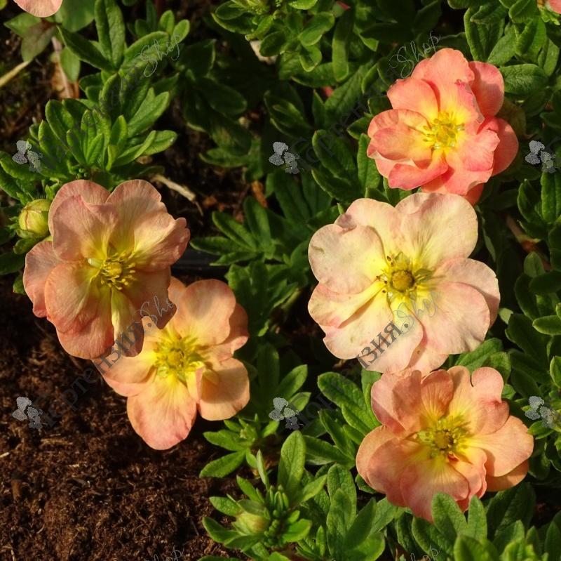 Лапчатка кустарниковая (курильский чай) Белла Эппл декоративный цветущий кустарник. Листья мелкие сложные из 5 лепесточков. Цветы крупные кремово розовые с оранжевым оттенком, цветет с июня по октябрь. К почвам не требователен но не любит вымокания. Устойчива к вредителям и болезням. Прекрасно растет в городских условиях. Морозостойкость -34,4С