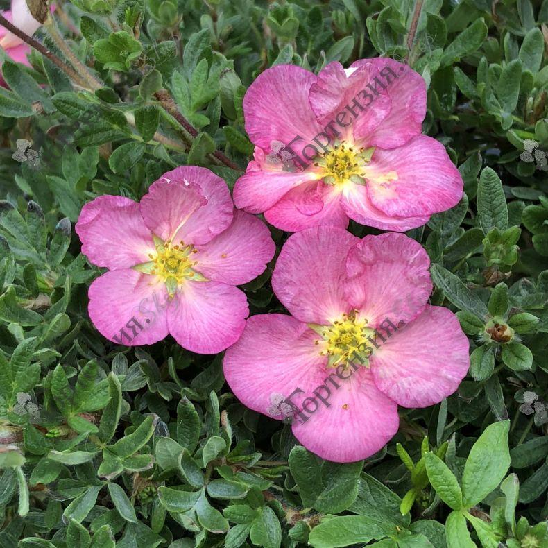 Лапчатка кустарниковая Нью Даун (Potentilla fruticosa NewDawn) - компактный кустарник с округлой формой, высотой до 0,9м и диаметром кроны до 1,3м. Цветет небольшими нежно-розовыми цветками, с нижней стороны лепестки белые, не выгорающие на солнце, до 3см в диаметре с июня по октябрь.  Листья темно-зеленые, состоящие из 3-7 ланцетно-яйцевидных листочков, до 3 см длиной. Засухоустойчив, к почвам неприхотлив. Светолюбив, но мирится с небольшим затенением. Зимостоек. Хорошо переносит городские условия.