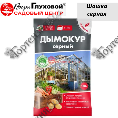 Контактный акарофунгицид. Применяется для подвалов и погребов (вне жилых помещений), пустых парников, теплиц и оранжерей для уничтожения возбудителей болезней, бактериальных инфекций, насекомых-вредителей и клещей. Дым от горения шашки (сернистый ангидрид) проникает во все уголки обрабатываемых помещений и уничтожает возбудителей грибных и бактериальных болезней, очищает деревянные и любые другие поверхности от грибка, плесени, гнили. Убивает насекомых-вредителей, клещей